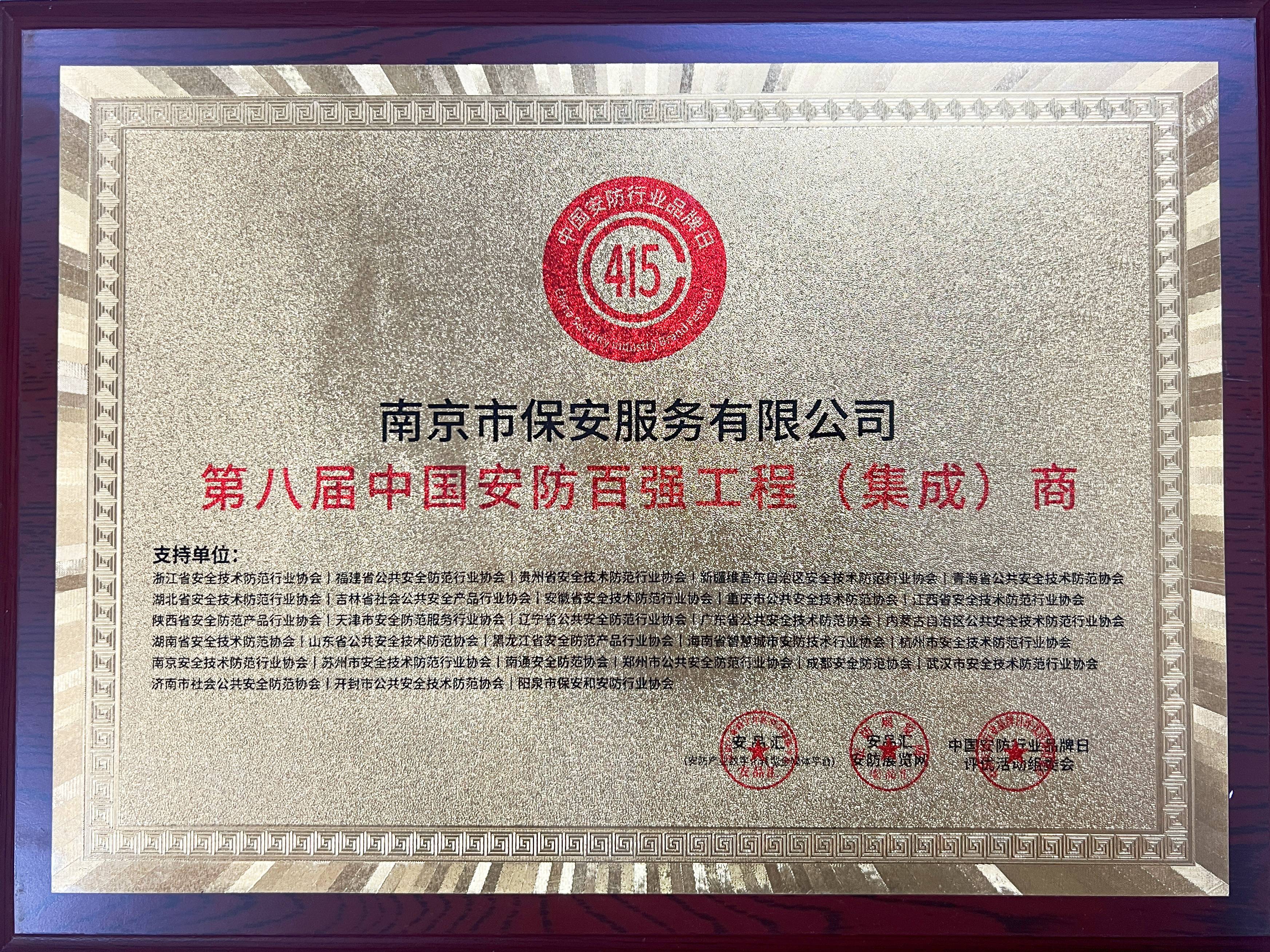第八屆中國安防百強(qiáng)工程(集成)商榮譽(yù)稱號